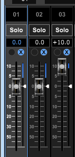 當我把第三個推子的音量拉大時,由圖的GR表可知,第三個通道所分享到的增益隨著音量的增加而增加。